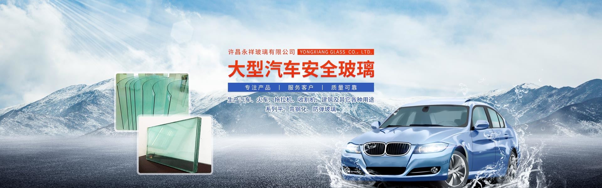 許昌永祥玻璃有限公司始建于2003年,總投資1200萬元,大型汽車玻璃的專業生產商。可生產汽車、火車、拖拉機、收割機、建筑及其它各種用途的系列平、彎鋼化、防彈玻璃,年生產量可達80萬平方米,公司選用優異的MT-GPW兩用玻璃鋼化爐機組及系列的配套機械設備,采用計算機控制系統,全程自動控制鋼化生產的工藝過程以及完備的檢測手段,較先進的工藝流程,產品質量達到質量標準(GB9656-2003)和歐州標準(ANSIZ97.1—1975)。我公司已通過ISO9000:2000質量管理體系認證。嚴密、完善的質量體系,為優異產品提供了可靠的服務質量。我公司地處中原地區,位于河南省許昌蔣李集寇莊工業園,地理位置優越,交通非常方便,火車與汽車四通八達,距河南省會鄭州90公里,距許昌市僅5公里,火車站乘3路公交車15分鐘就可到達我公司。我公司產品質量優良價格合理,深受國內廣大客戶青睞,產品暢銷各地。我公司的宗旨: 質量優良、顧客滿意、忠誠守信、開拓進取、永攀高峰